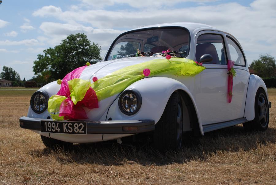 un cox blanche quel banalité avec des jantes Porsche noirs et les phares en noirs et même les baguettes noires bla bla bla ...