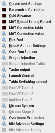 Vous pouvez voir en bas "fuel VE table 1" qui est par exemple la carto d'injection et "fuel VE table 2" qui est une autre
