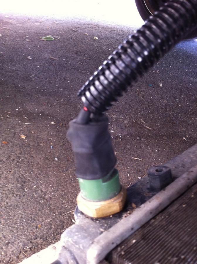 j ai mis la cosse a détrompeur sur la sonde et j avais un capuchon étanche de maitre cylindre, comme ça ça risquera plus de rester allumé en permanence quand il pleuvra a fond. j ai fait le ménage pour le départ en congé, comme j avais un rabe de moquette....vite fait pour les gamins