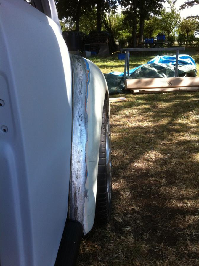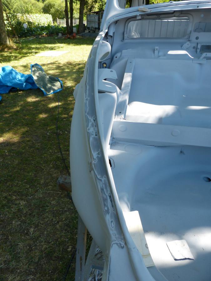 poncage au 400 à sec, pose de l'antigravillon isotech, des joints de carrosserie