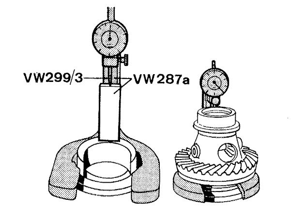 La longueur du logement disponible dans la boite se mesure toujours avec l’outil vw289d monté entre les deux flasques serrés au couple : On tourne la boite de 180° et le calibre vient se plaquer contre l’autre roulement, on mesure donc directement le jeu entre le calibre VW et les roulements : Ici on a donc J = 107.91(inscrit sur le calibre VW) + 1.86 soit J = 109.77mm