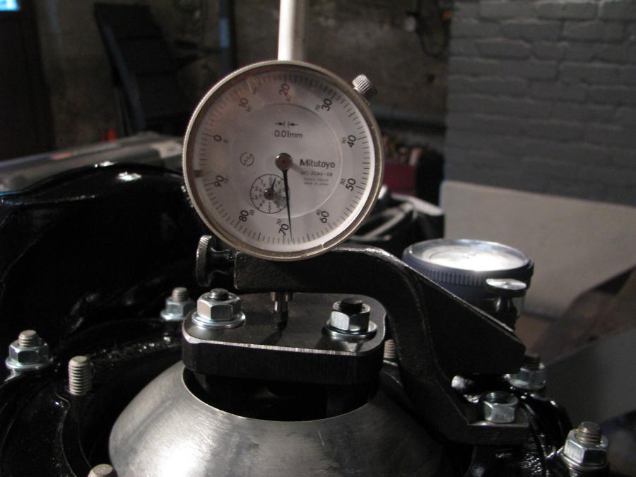 Petite vérification de la précontrainte des roulements en desserrant un flasque, une cale de 0.1mm passe "gras", les mesures avec l’outillage étaient donc correctes, ouf!! Ce weekend contrôle de l'ensemble au bleu de Prusse!