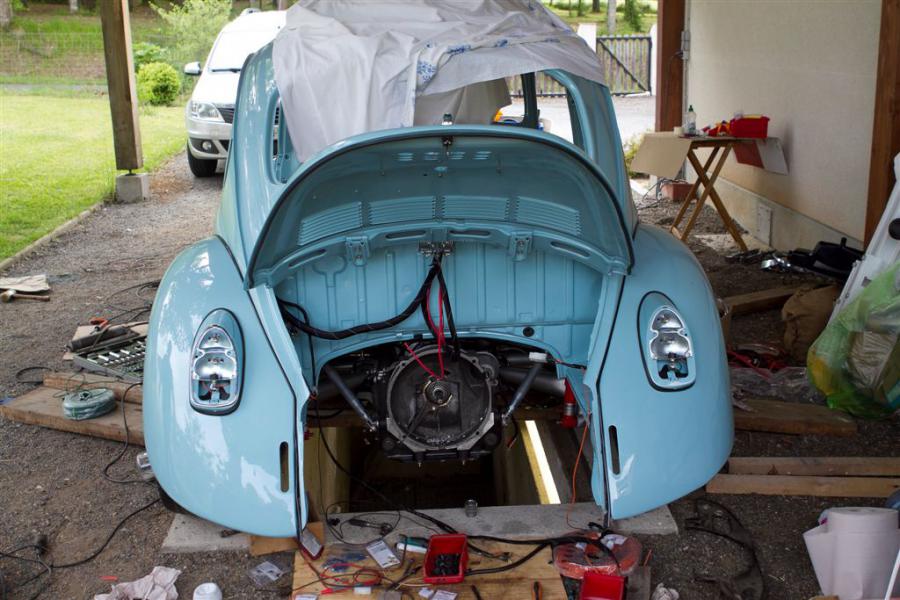 La coque se remonte petit a petit je fini de mettre les portières ce soir, l électricité est finie il me reste que le plafonnier a câbler, la jauge a carburant et le moteur. Demain matin si j ai le temps et le courage je jette le moteur sur la boîte :-)