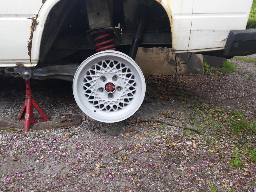 les pneus sont partis à la poubelle les jantes à l'aerogommage d'où elles sont revenus comme ça :