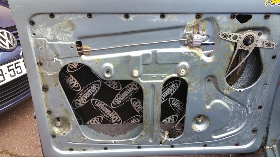 J'en ai profité pour mettre du Dynamat dans les portes, ça ferme maintenant avec un beau "clonck" sourd et plus un "bleng" de tôle vide.