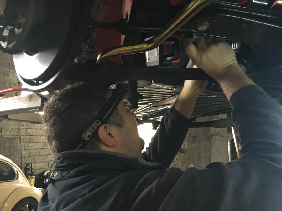 Démontage de barre stab avant remplacement par une nouvelle de chez Kerscher qui est elle homologuée