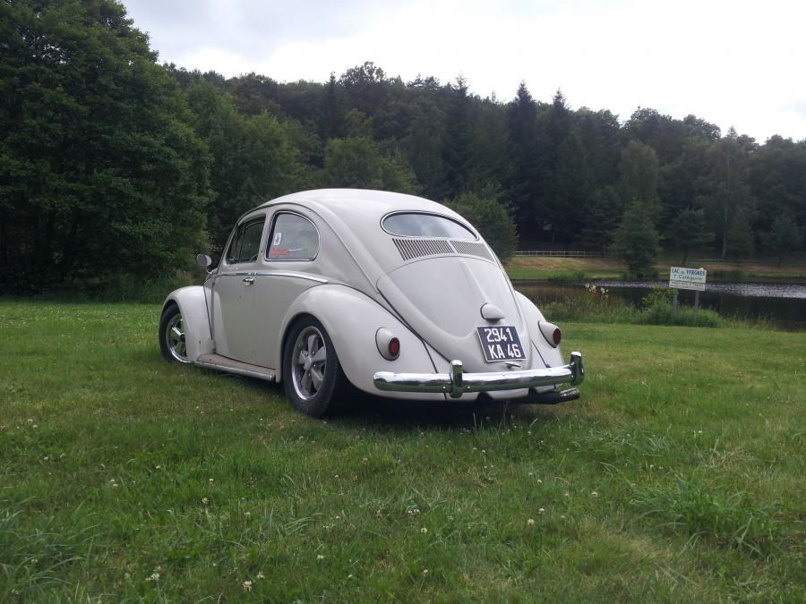 Une Ovale de 1957 typée, jusqu'à maintenant, old school. Elle est posée sur un châssis à rotules, boite à trompettes avec support Berg, line lock, disques vw devant,fusée décalées CB ancienne génération sur TAV rétréci de 6cm, tambours arrière avec cylindres de roue avant, etc...