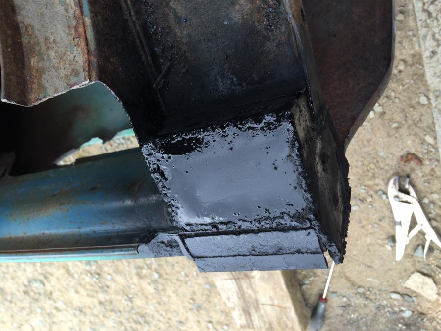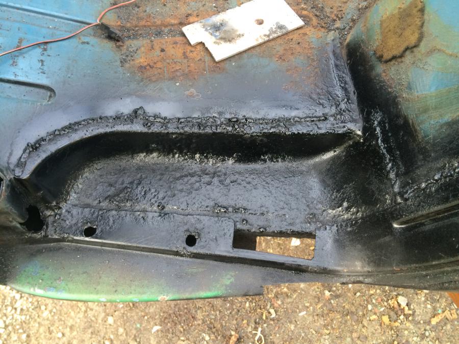 et enfin mise en peinture antirouille je sais ya encore de la tolerie et normalement on fait sa en dernier mais j'attend des pieces donc je m'occupe puis plus de gaz sur le mig donc pour faire de la carrosserie compliquer fil fourré pour tout ce qui est soubassement sa passe