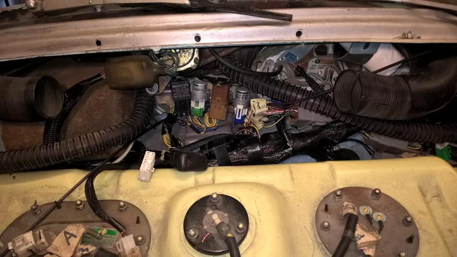 il est protégé par de la gaine tressée helagaine hlb , c'est pas facile à placer mais c'est joli, les fiches sont des deutsch. J'ai crée un support pour la boite à fusibles principale à coté de la batterie, c'est assez propre. Le moteur d'essuie glace est celui de la sub.
