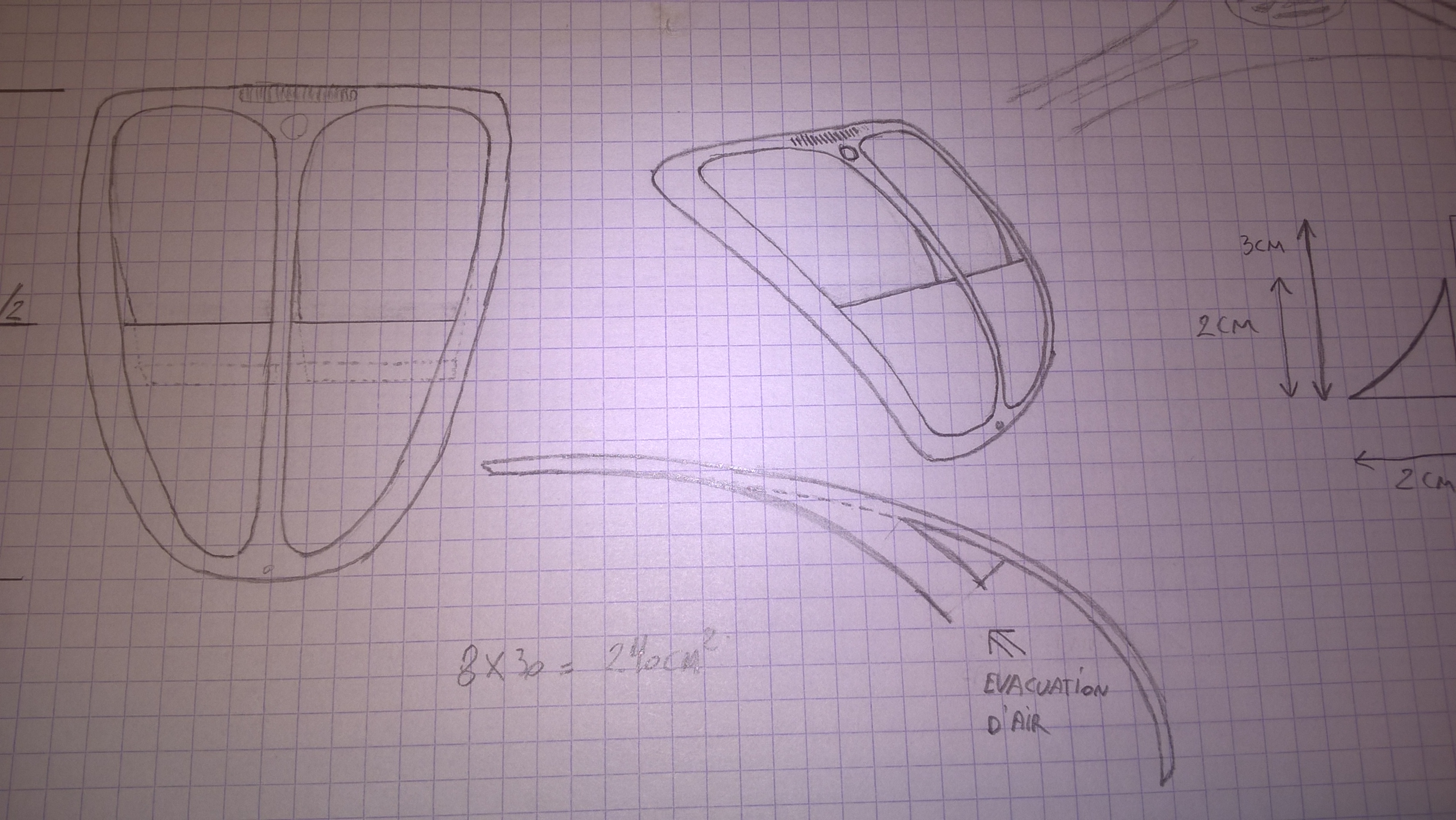 J'ai fait un sondage autour de moi , à savoir plusieurs propositions d'évacuation d'air sur ailes et capot et finalement c'est le capot qui l'emporte, dans une version améliorée de mon dessin, l'évacuation est reculée dans l'avant du capot, de devant, on ne devrait voir que la ligne de la decoupe et la pente, on ne verra l'évacuation que de l'arrière Mais avant de couper, je teste le spoiler, il sera prêt demain , je croise les doigts pour que ca fonctionne, parce que si je peux éviter de le découper, ca m'arrangerait