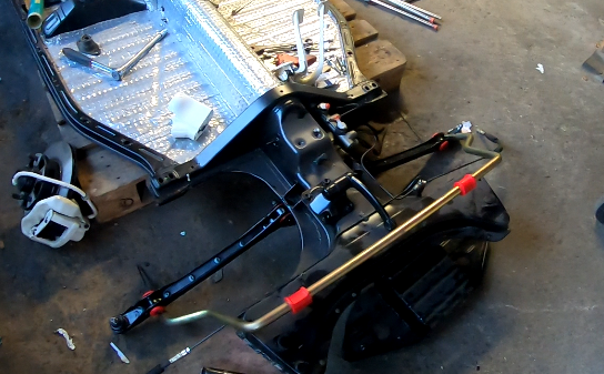 Puis le montage de la tringlerie de direction, avec une barre centrale neuve, toutes les rotules neuves, et une modif sur les barres latérales pour y ajouter les quelques cm manquants pour éviter le pincement étant donné qu'avec les demi-trains 944 on est plus large qu'à l'origine.