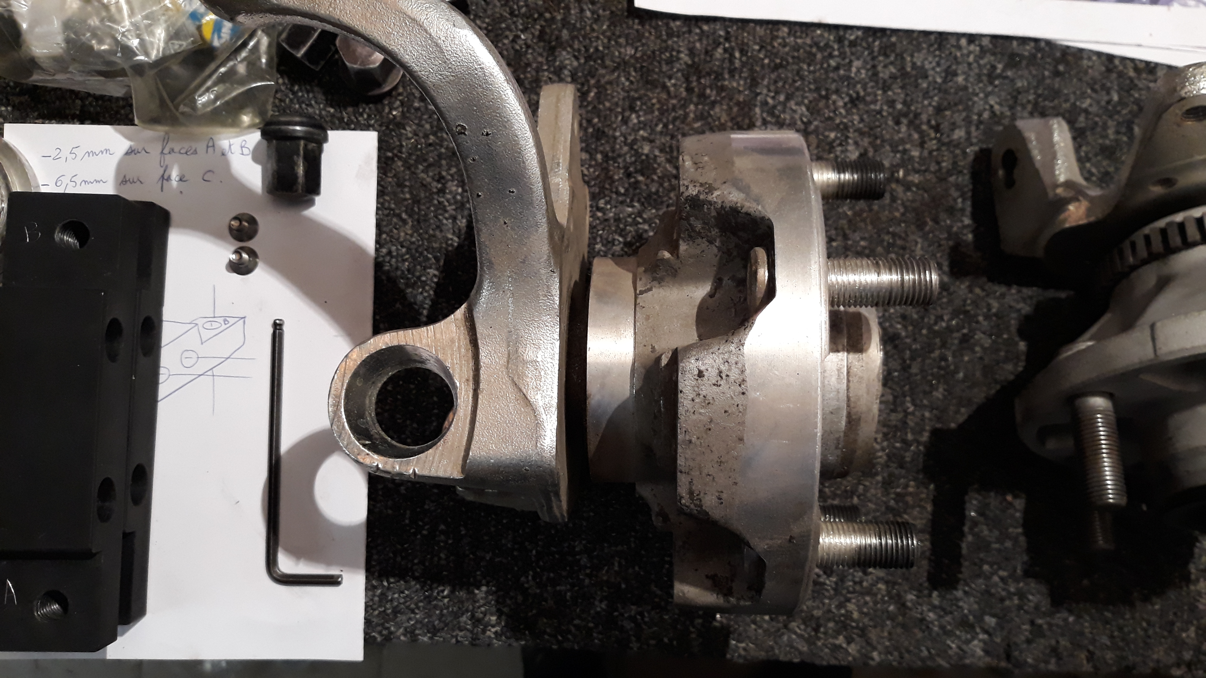Les moyeux sont aussi usinés pour être coiffés d'un disque Porsche Boxster, disques neufs que je peux vendre en supplément...