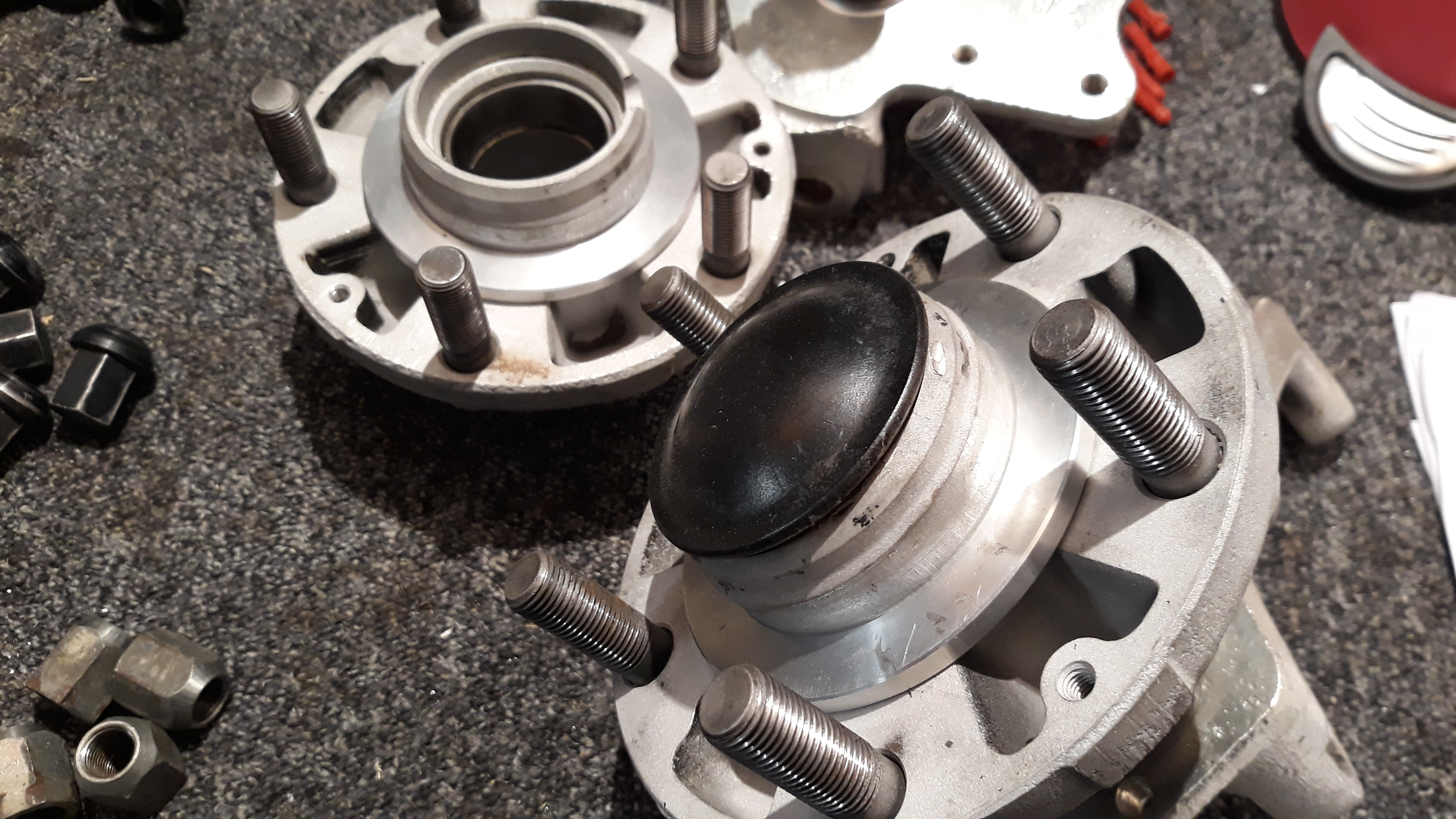 Du coup, j'ai des moyeux de 944 Phase2 sur fusées cox, le tout coiffé de disques Boxster S et étriers Boxster S !