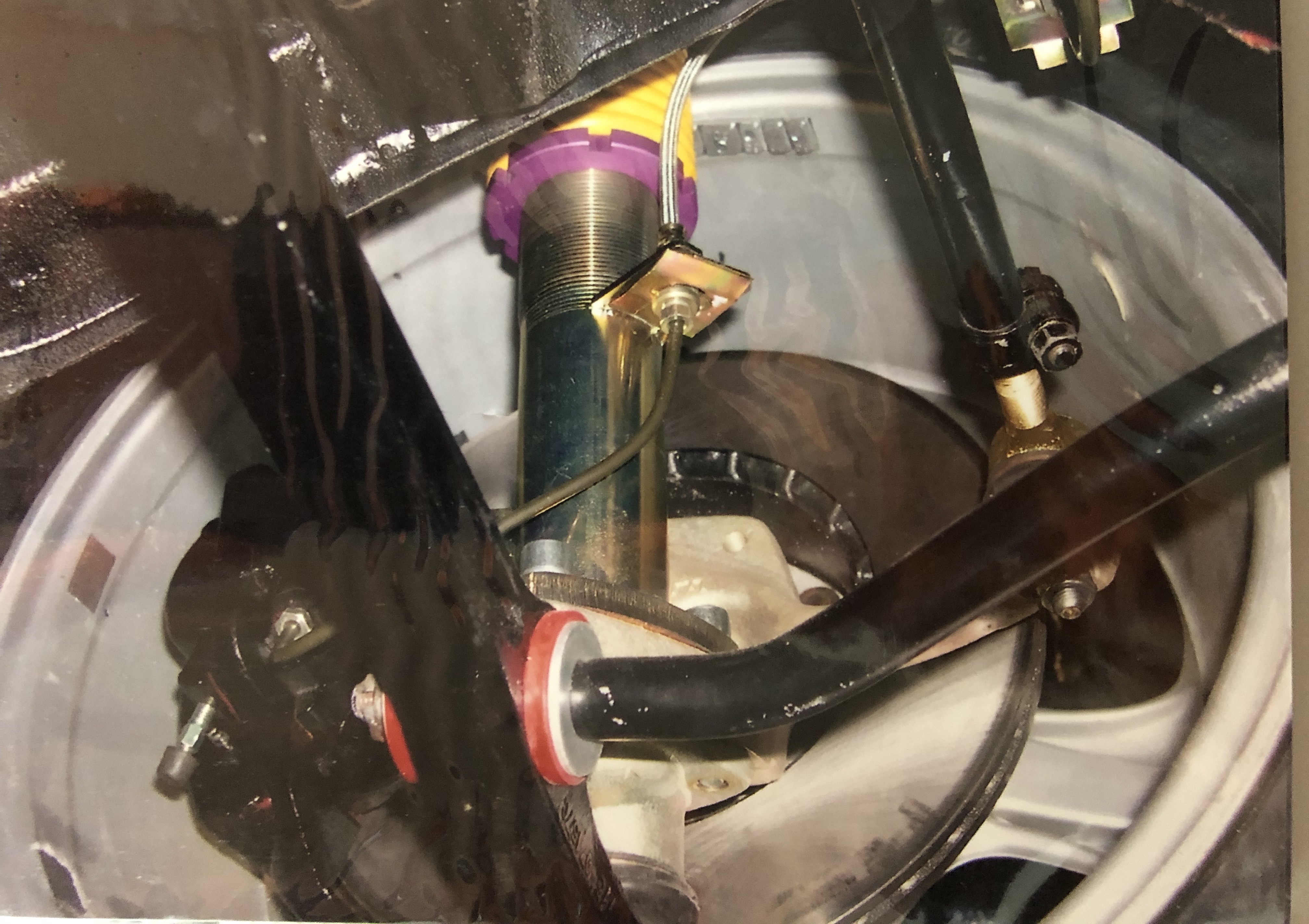 Suspensions koni jaune arrière et combinés kersher filetés rouge koni avant.