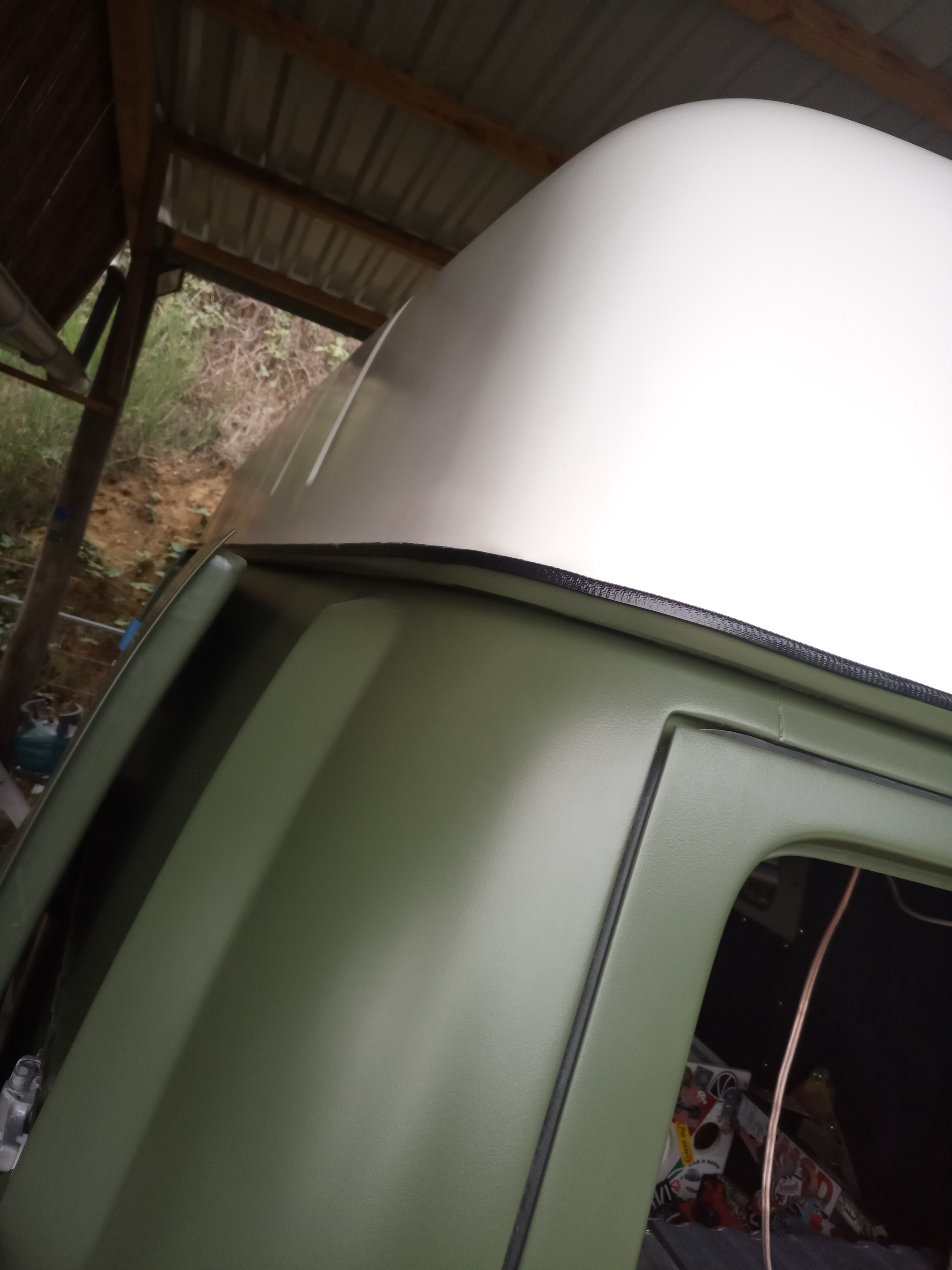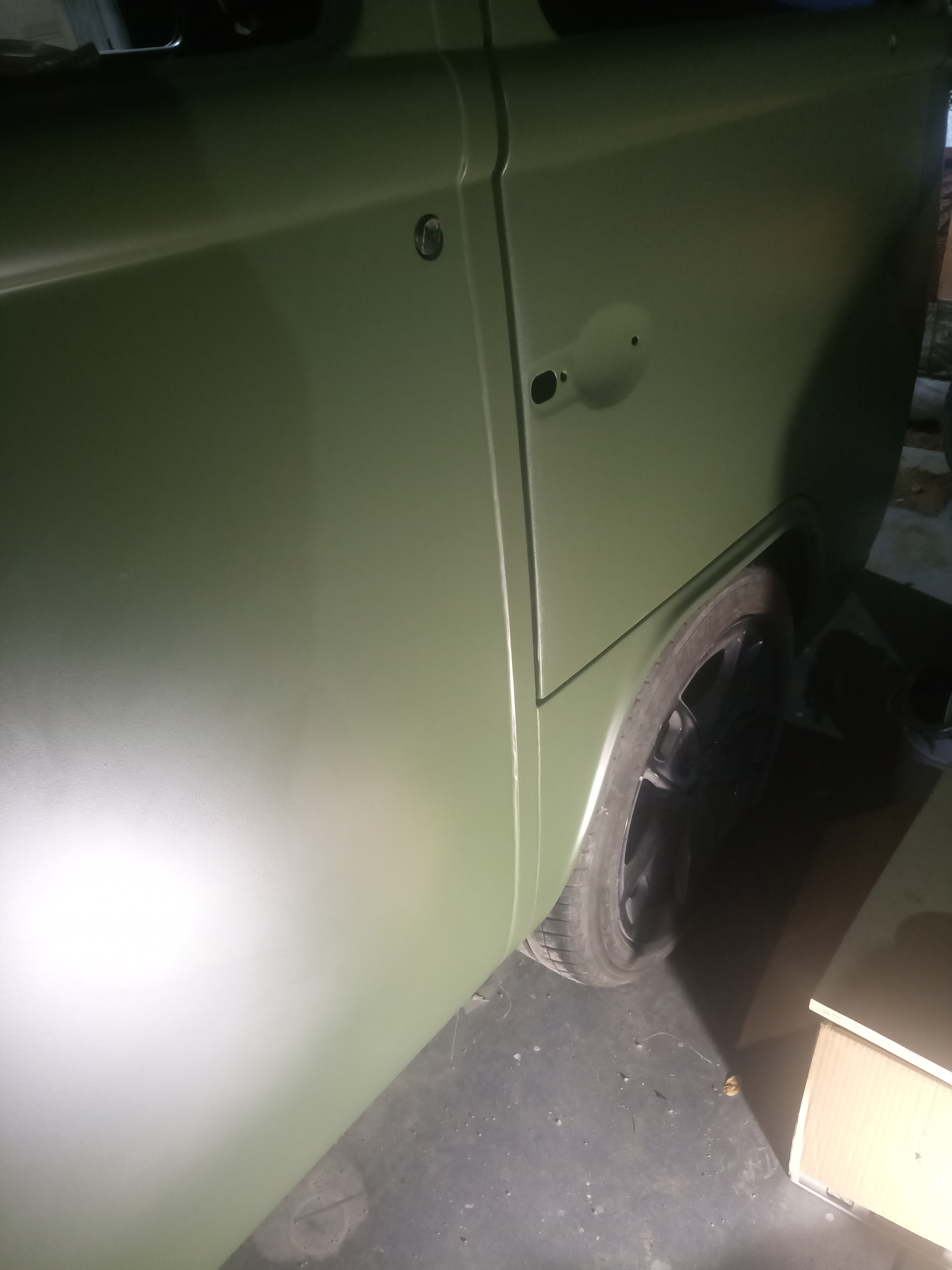 Donc le bus est peint juste je vais avoir quelques raccords a faire problème de charge a certains endroits qui est créer des microbulles au passage du vernis rien de mechant déjà test un raccord et j'arrive a rattraper mais là le temps est clairement plus au rendez vous