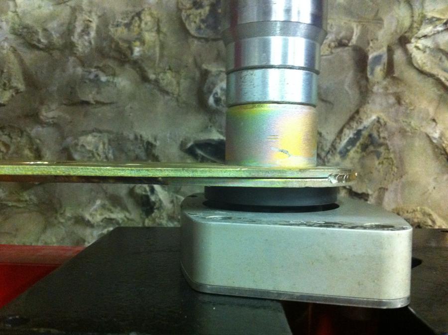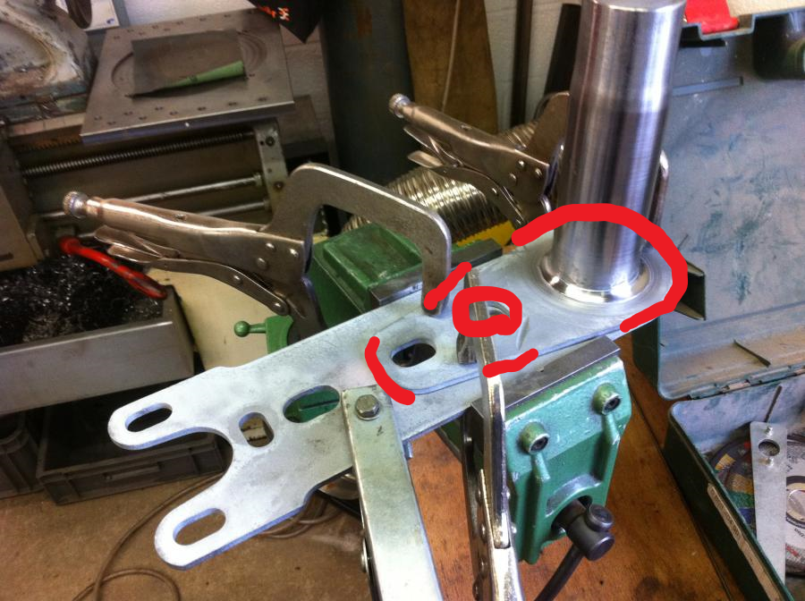 Et pour l'ex vis de carro, je soude egalement sur toute la periferie du grand trou.