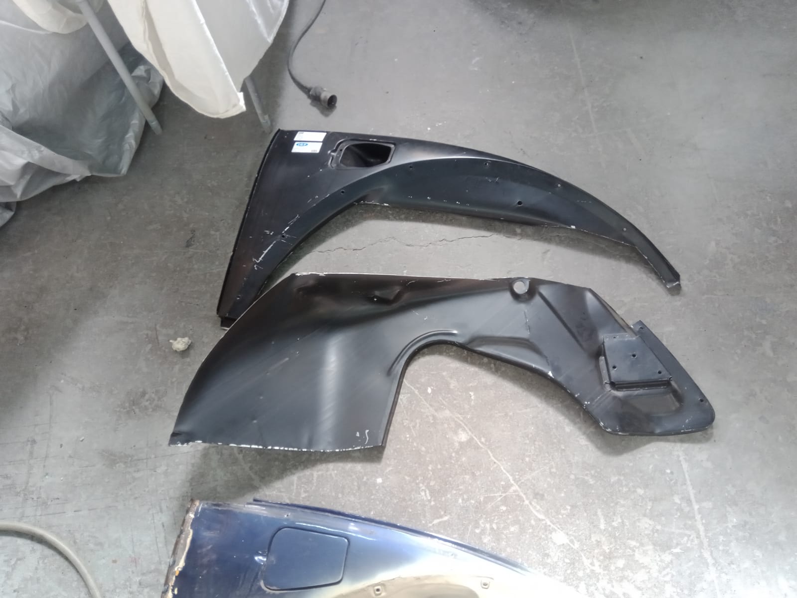 Photos envoyées par le carrossier, en cours de travail. A noter l'excellent travail de dépliage des replis aux endroits où il y a plusieurs peaux... le gars est bon!