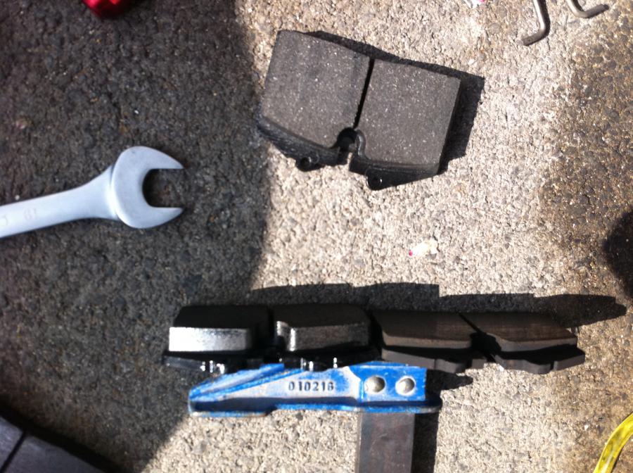 aujourd hui opé pneus et freins , les gommes avant sont repassées en 50 , les plaquettes seront faites dans l aprem..., pas usées ( il reste 2 mm au temoin central, mais je change, nettoie , controle.
