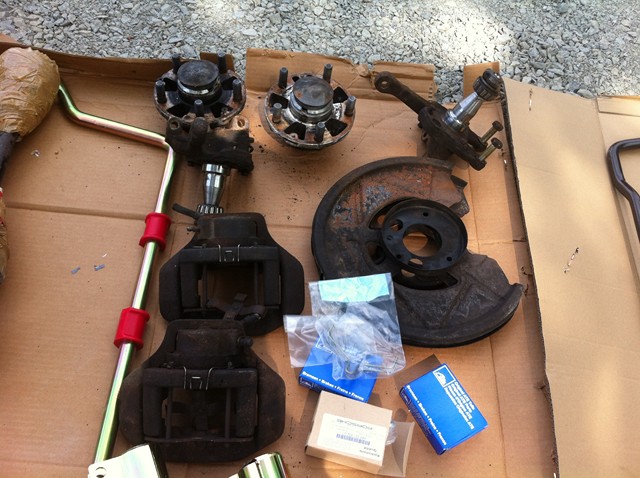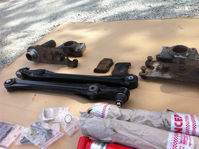 Eh ben je viens de rentrer chez mes parents. Et comment dire y as du boulot qui m attend j ai reçu de quoi monter le train arriére, la barre stab de 944, les tirants avant de 1303, les combiné avant mes koni rouge pour l arrière, le triptyque csp, les rotules kerscher et de quoi refaire mes freins avant. Y as de la soudure dans l air. Bref des bonne vacances en perspective:-)