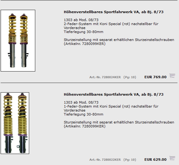 Pour ma part j'ai des combinés filetés Remmele avec ressorts FK 2066, donc 600 NM sur mon cab 1303 avec des cup en 17, fusées et freins a disque vw origine.