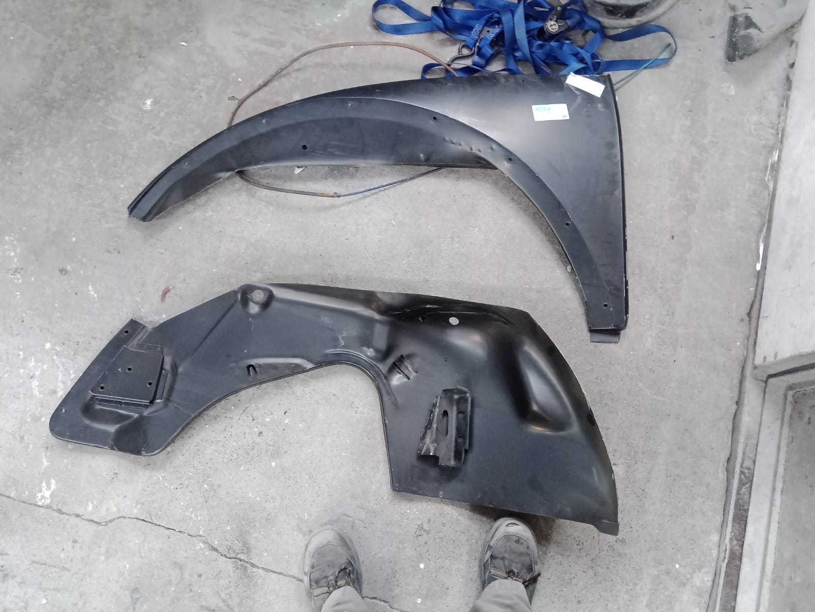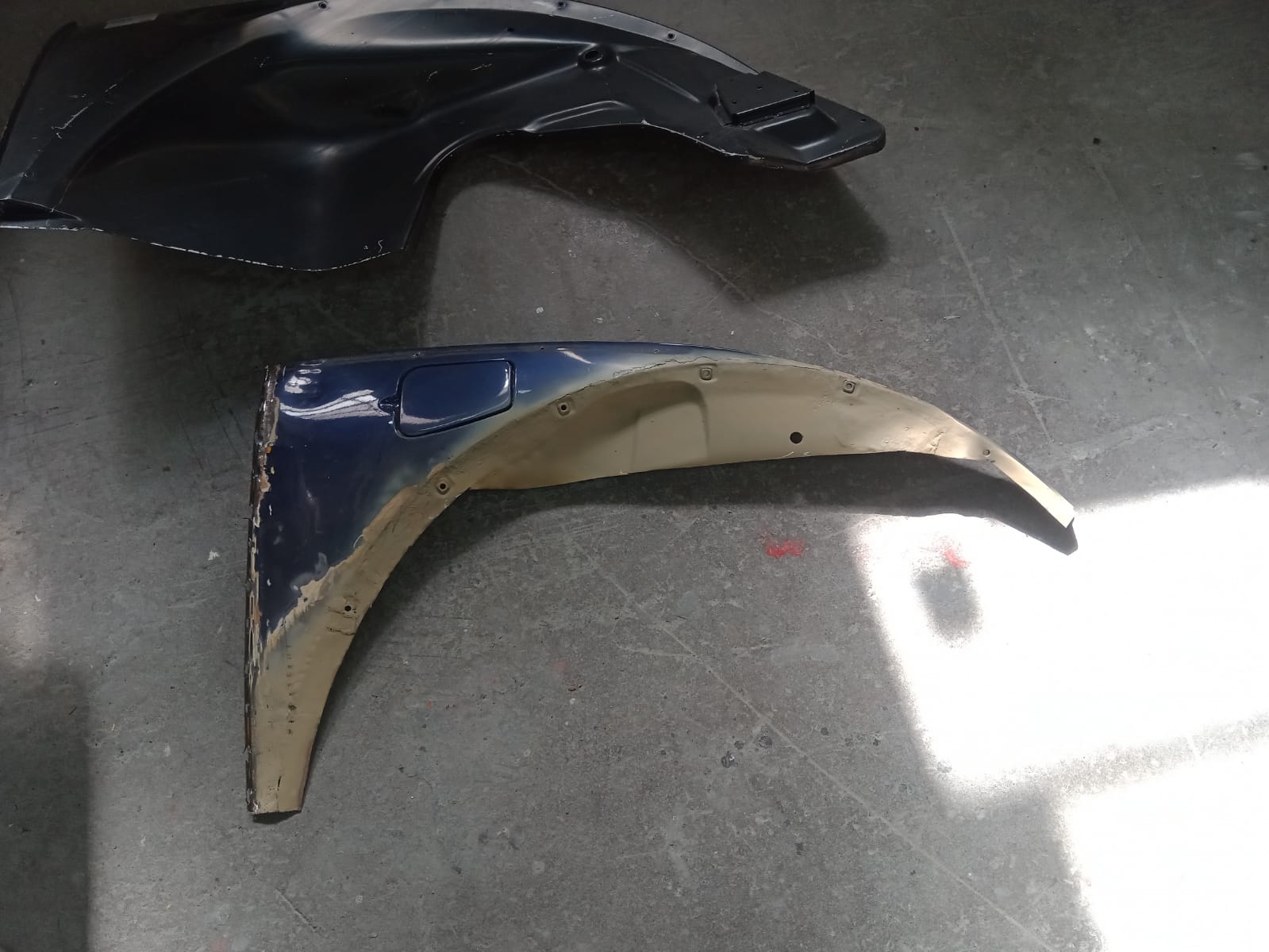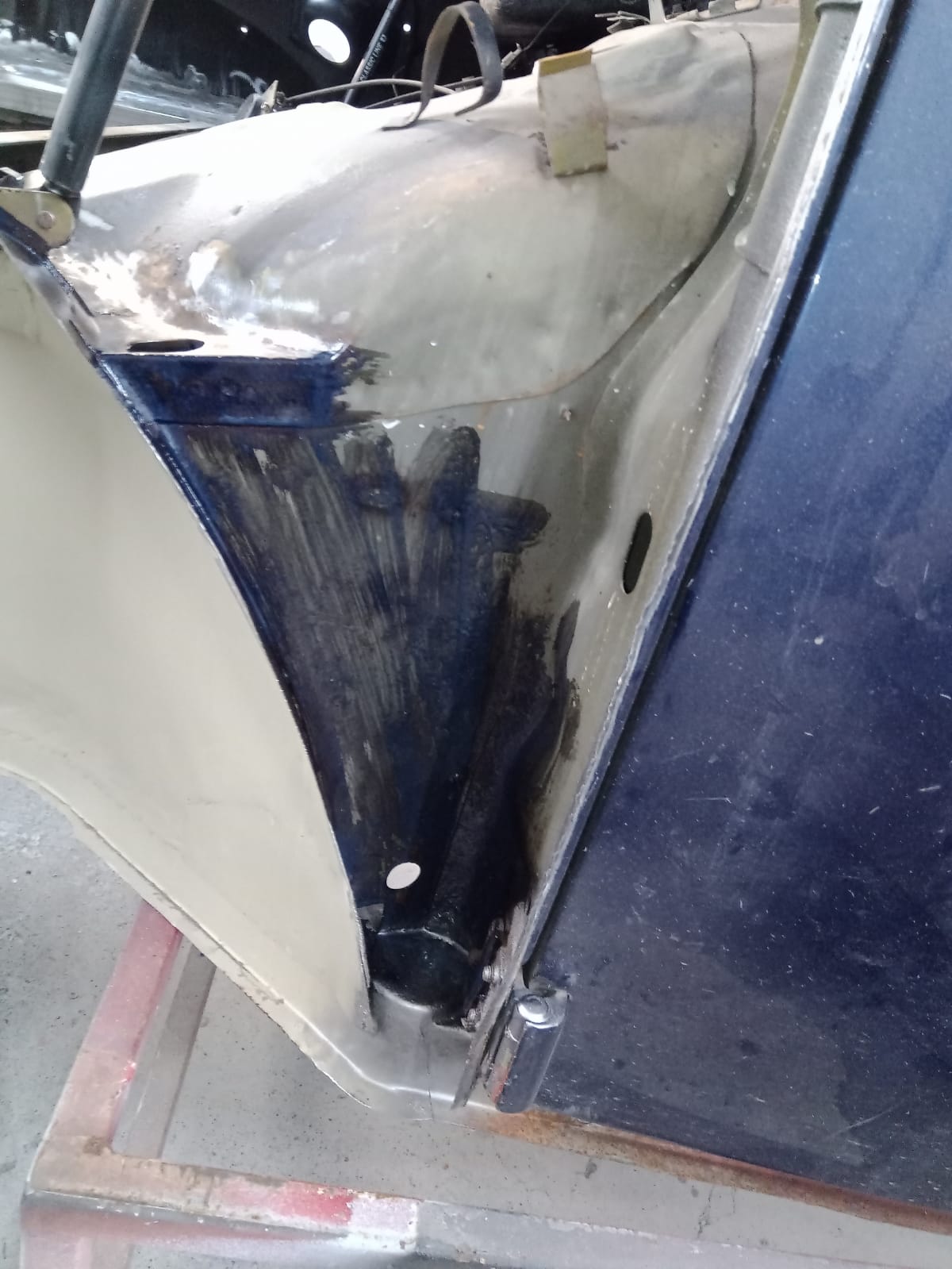 Photos envoyées par le carrossier, en cours de travail. A noter l'excellent travail de dépliage des replis aux endroits où il y a plusieurs peaux... le gars est bon!