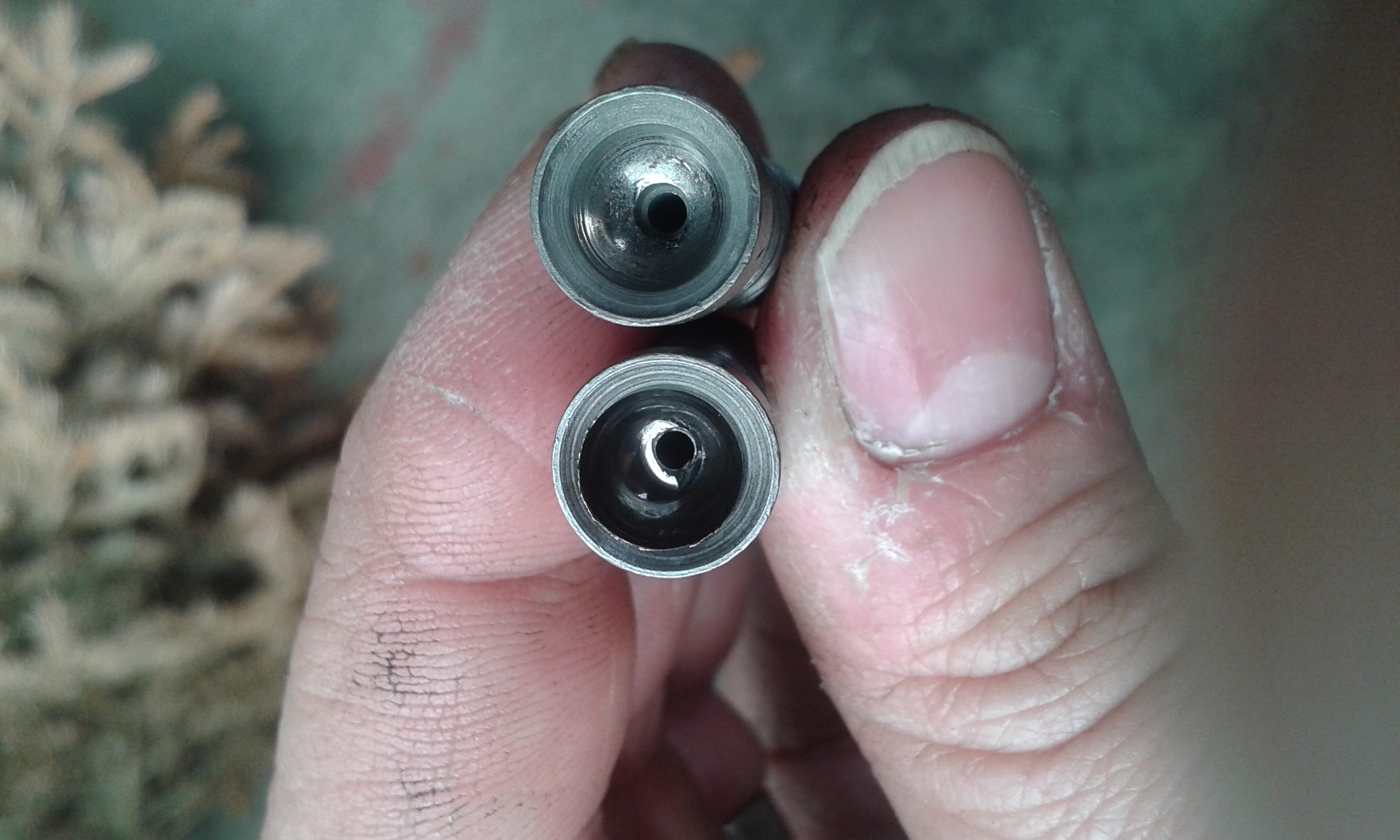En haut un peu de pitting et en bas la tige est rentrée de 0,7mm dans la coupelle.
