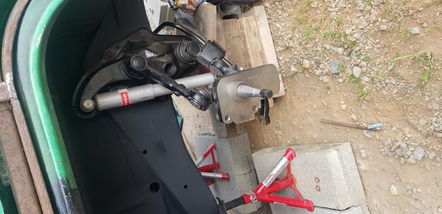 Et un peu de remontage et la hauteur train fusee decalés me plaint bien a voir quand tout sera remis et qui sera fini les jantes miqe en place temporaire avant peinture mais bon on en est pas la reste 2-3trucs a souder et on en vient a bout apres ce sera planage tire clou etc