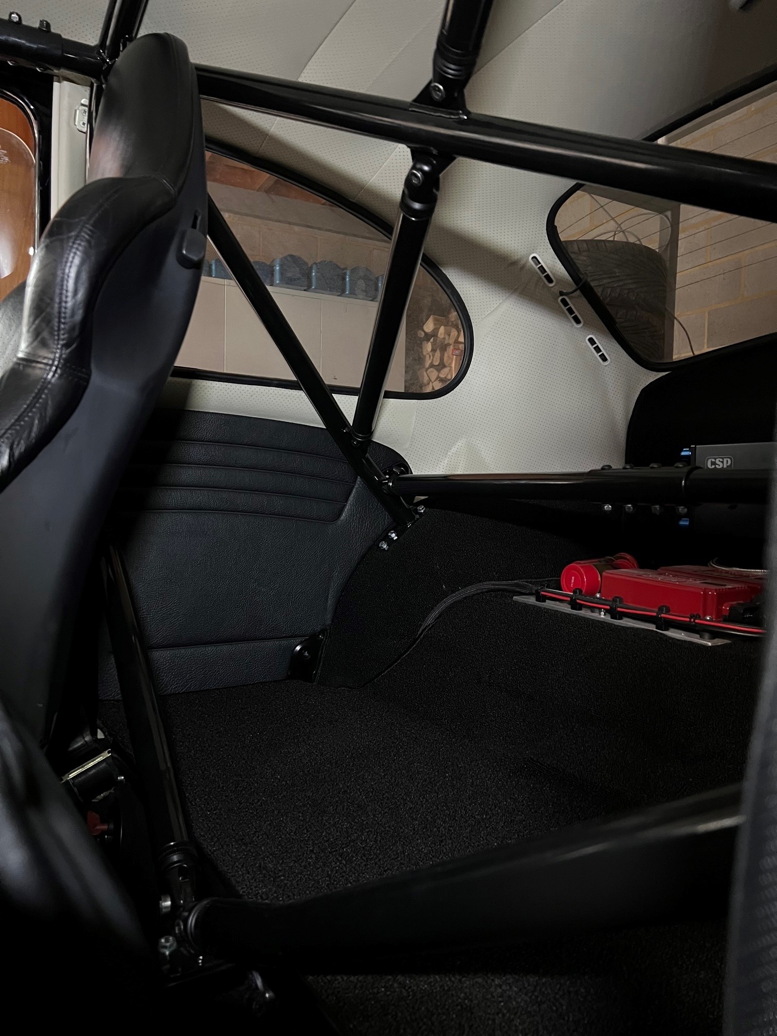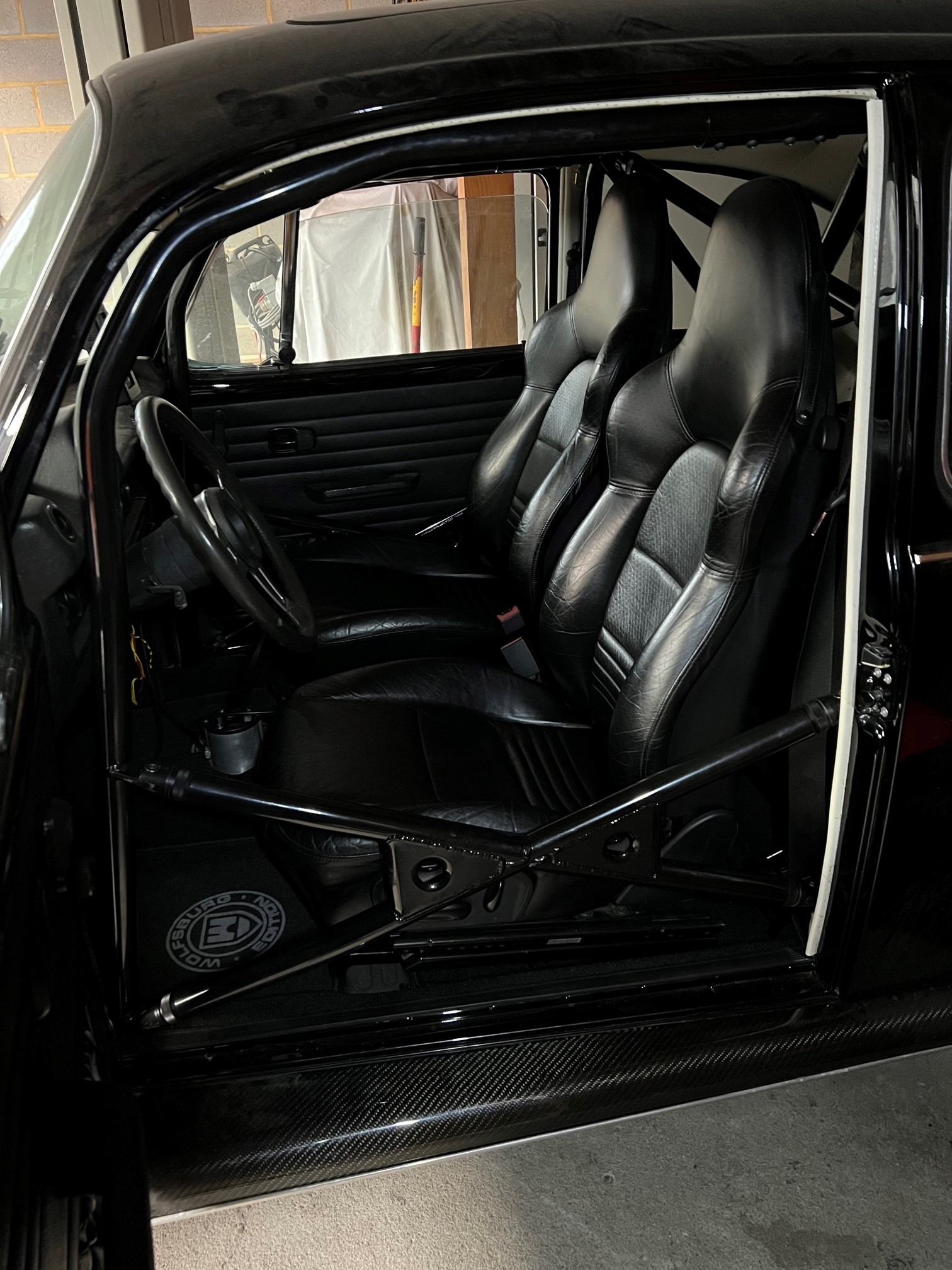 - Les sièges Porsche, a la base bleus, sont revenu du Sellier après une teinture noir.