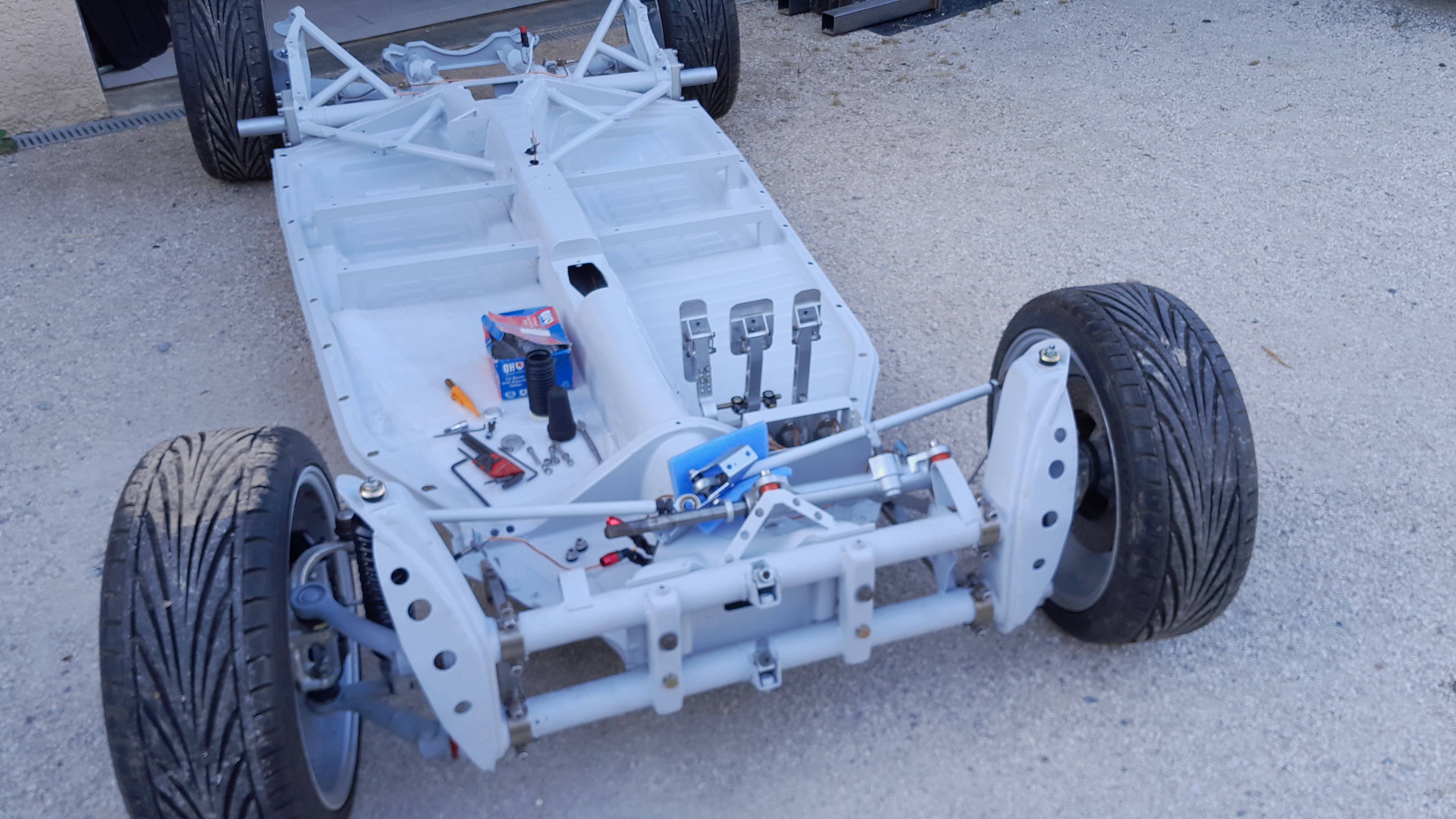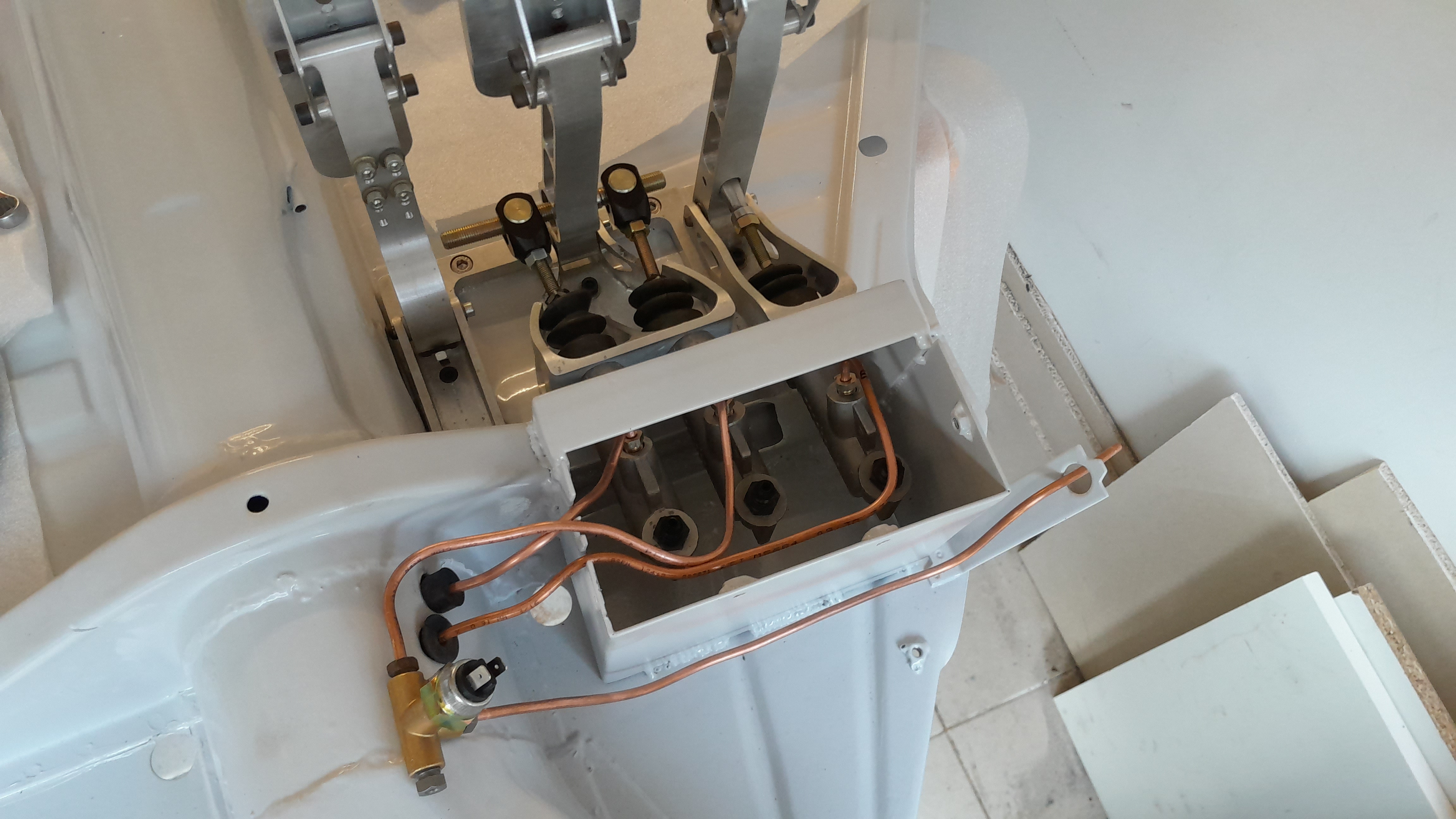 Et début du freinage... il me manque un raccord pour le frein à main, mais le pédalier est quand à lui... en place! Je suis à bloc !