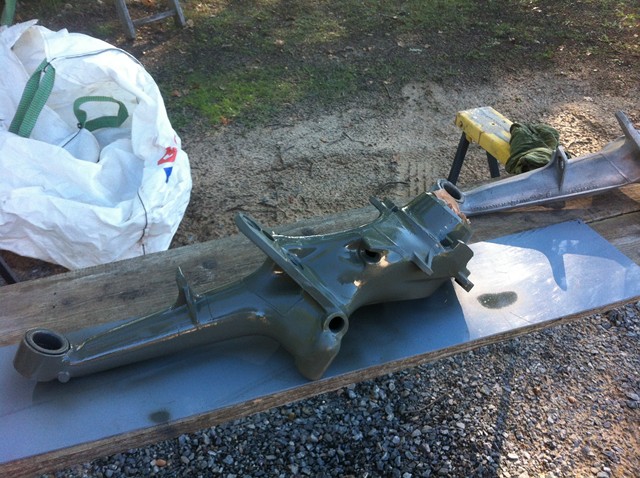 Pour commencer, sablage et apprêt des bras alu, des moyeux avant et divers trucs.