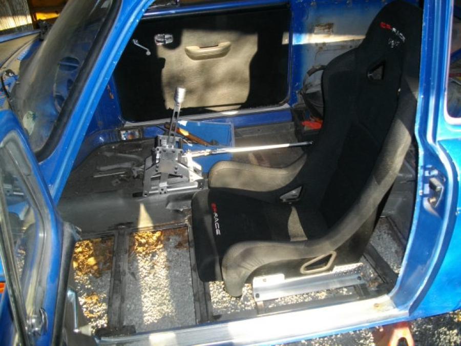 Maintenant gros travail sur l inter du notch , suppression des planchers ( ils sont pourris ) remplacer par de l alu , pas mal de trou a boucher pour lisser un peu l inter , soudures des support de baquets et harnais , adaptation du levier avec le passage de la tringle-rie ...... ponçage intégral et peinture , bref un peu de taf quoi