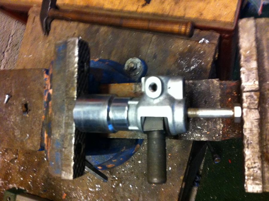 ce matin fabrication d une platine pour la pose du filtre a essence Subaru , j ai repris les fixations du régulateur et j ai percé taraudé pour le support de filtre j ai ensuite changé les silent bloc du coupleur Porsche pour des plus durs en vue de la reconstruction de la tringlerie