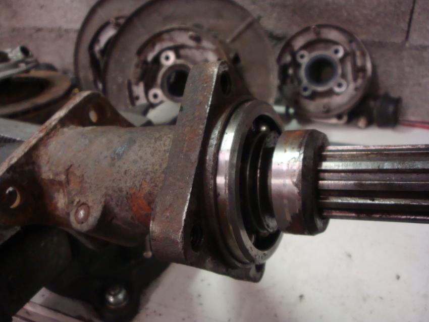 Ce qui est étrange, c'est que j'ai du jeu latéral dans l'axe (je choppe l'axe et je sens qu'il bouge droite, gauche etc...) mais pas dans le sens de l'axe (jeu axial), ce qui signifierai que l'écrou de 36 fait bien son rôle...