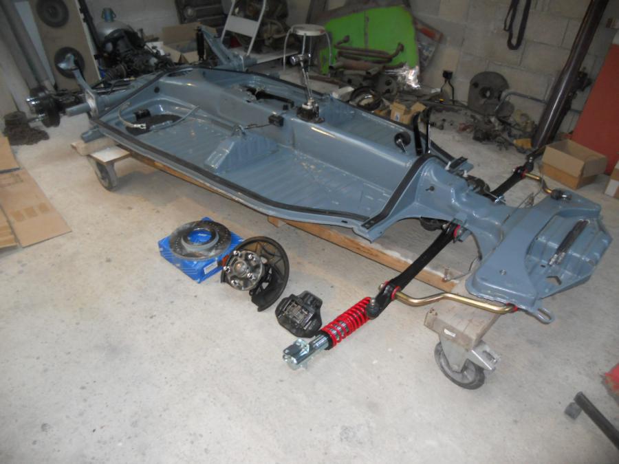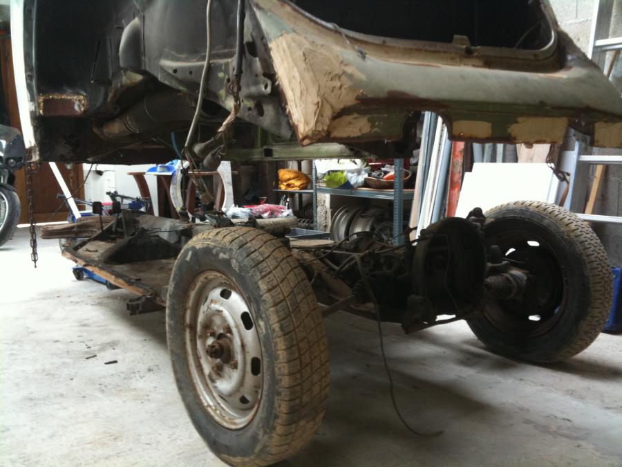 PETITES PHOTOS DU CHÂSSIS QUE J AI PRIS SUR MON GREFFON. LA VOITURE EST EN RUINE, JUSTE BONNE POUR RECUP LA TOLE MAIS IL ÉTAIT NIKEL.