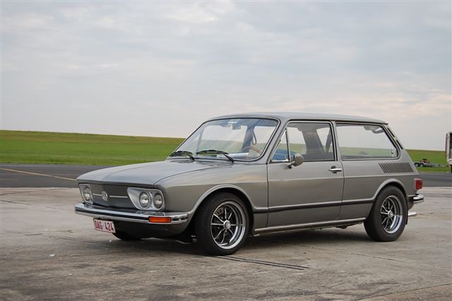 Sur la grise, j'avais mis quasi que de la recup : fusées décalées, kyb blancs (sinon je touchais trop souvent le nez de châssis vu les pneus trop bas 145 65 mais obligatoires à cause des 5,5 en ET 5), grosse barre stab. À l'arrière, 185 70 sur les mêmes jantes et hauteur d'origine probablement tassée.