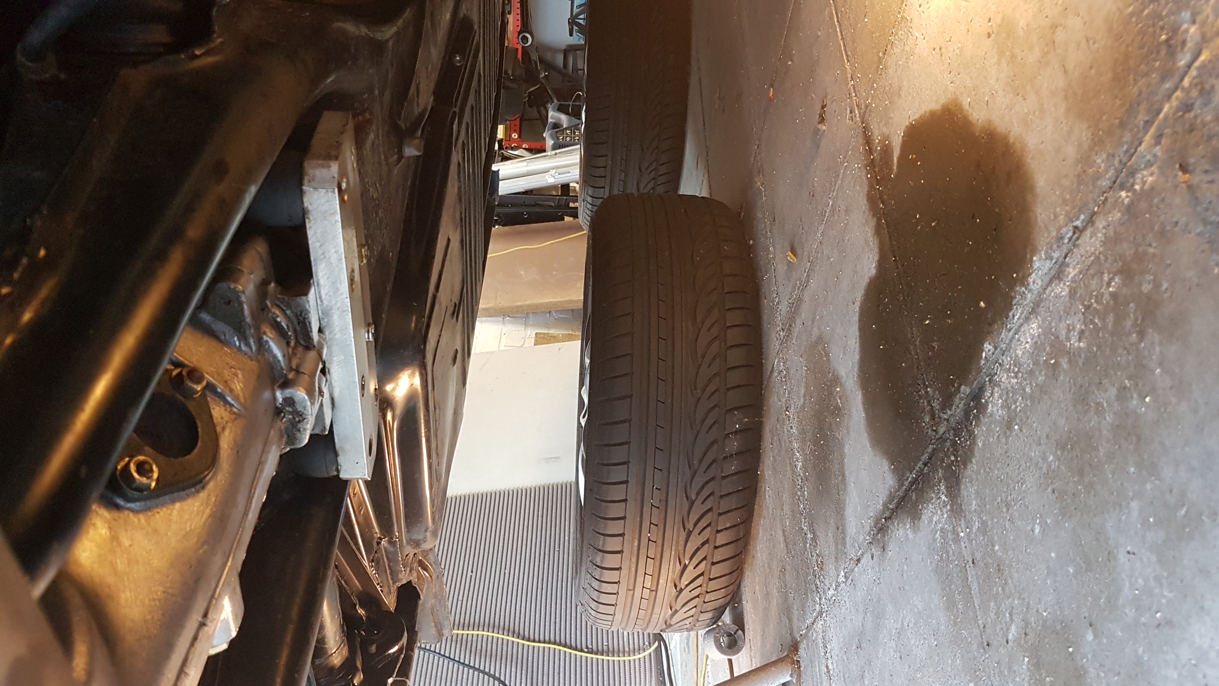 La tâche d'huile depuis que la cox est sur chandelle ( bien à plat ), je me dis que ça doit faire des années qu'elle fuit, donc le niveau est forcément pas bon ... espoir ... blablabla