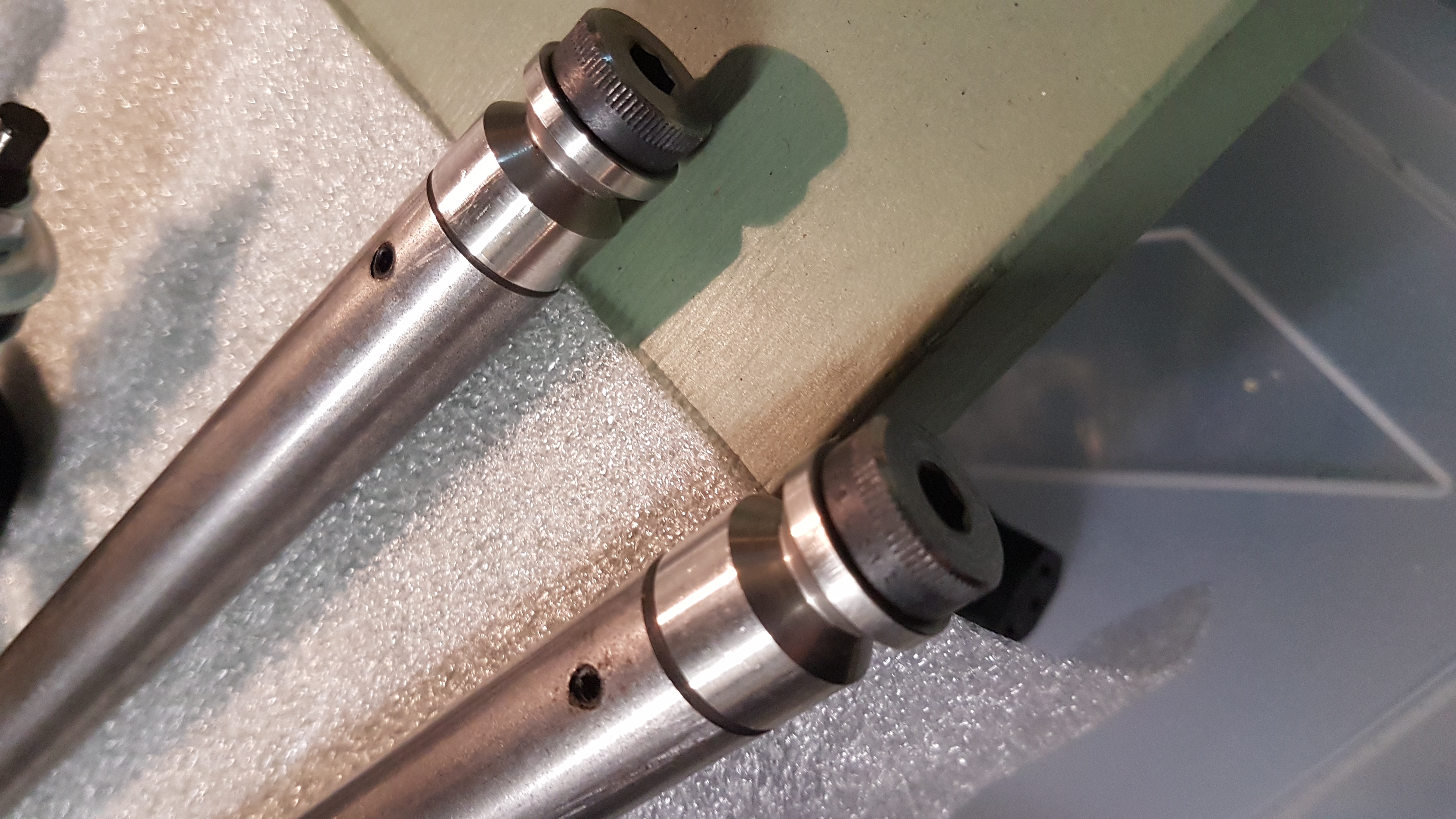 Diabolo ... pas d'usinage sur les bras, ils se fixent comme sur les lames de torsion. La visse-pointeau du bras rentre dans la gorge.