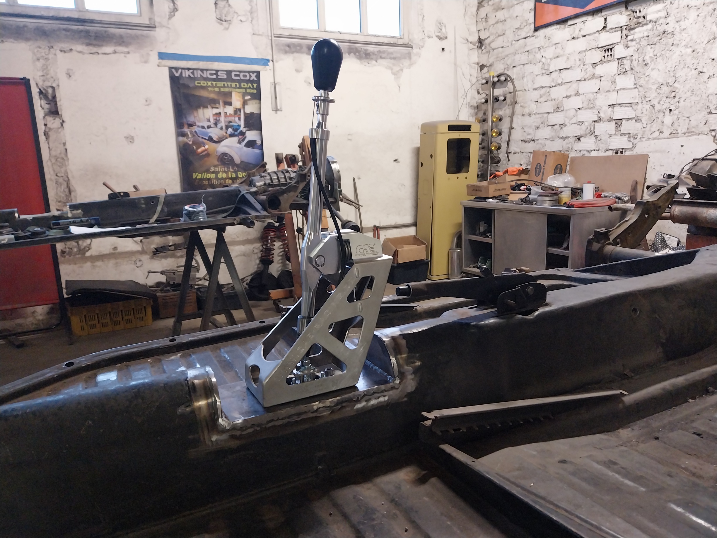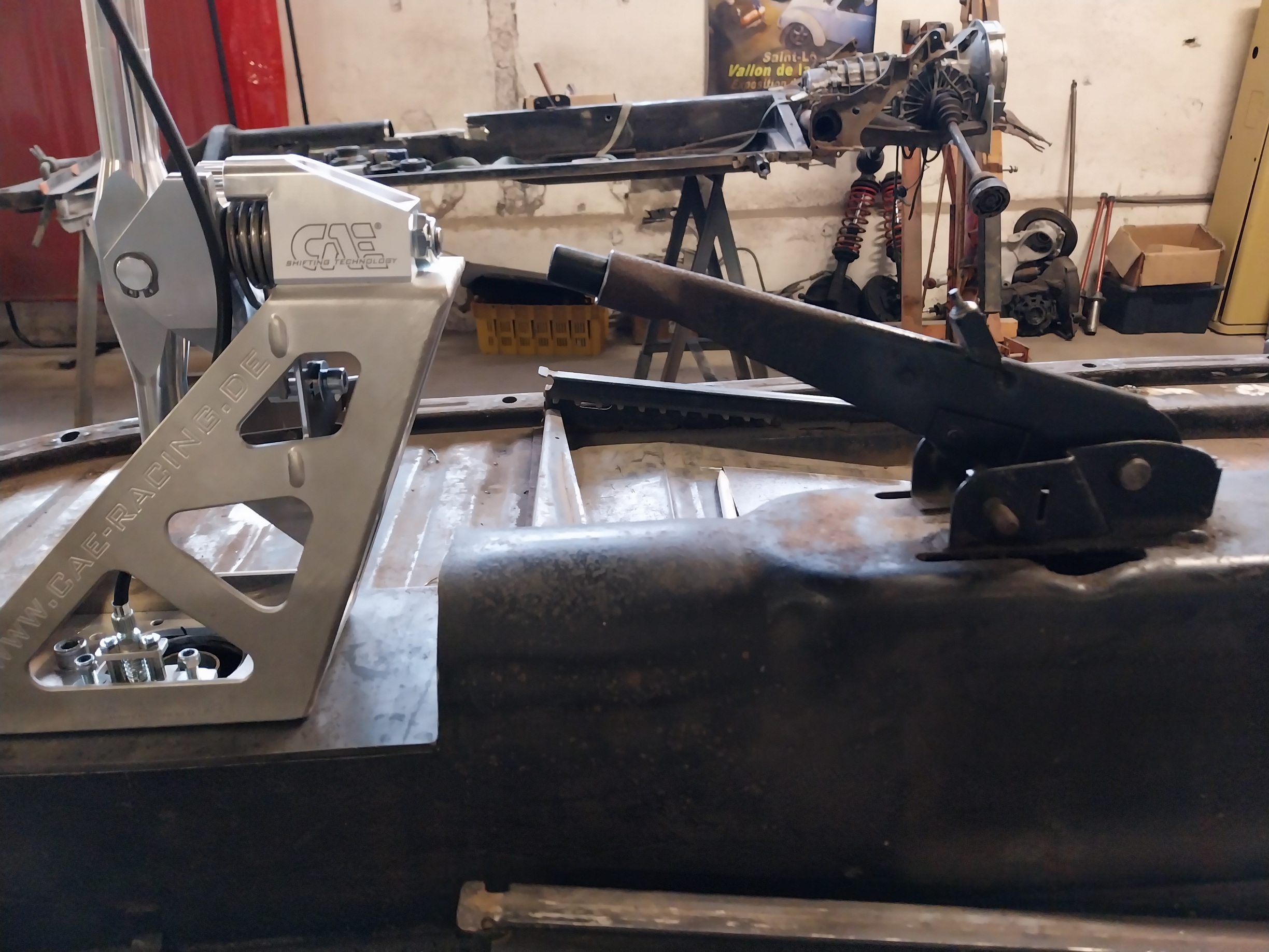 Finition du tunnel avec découpe, soudures des plaques. Côté boîte, tout est fonctionnel, reste le capotage à faire sur le châssis au niveau du coupleur de tringlerie ( prochaine étape).