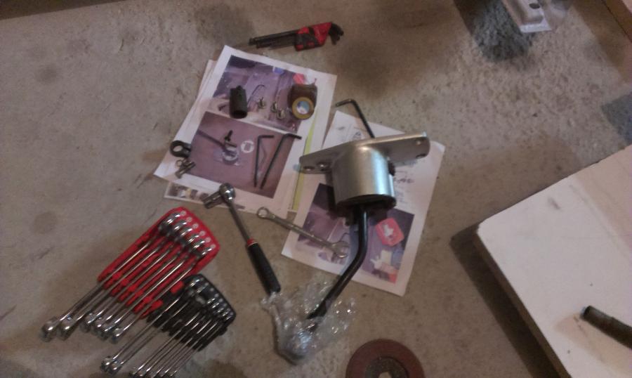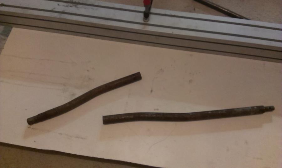 Doigts dans le nez avec mon outil spécifique... un truc de chirurgie avec un angle à 90° au poil. A l'heure actuelle, je n'ai pas fraisé à 45°, faut que je trouve une fraise... Je remonte le levier, même s'il n'est pas encore restauré, et j'attaque la tringlerie. Je mesure un manque de 125mm, donc je me fabrique un gabarit, et coupe coupe! Avec une rallonge en tube emmanchée et soudée, la nouvelle tringlerie prend place, avec boite et levier et coupleur Et je vire l'arche de positionnement... Les 5 vitesses passent impec, la marche arrière aussi