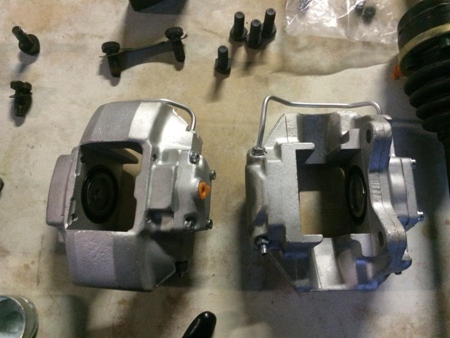 Pour être certains que je puisse immatriculer la voiture en « historique » en Allemagne, les possibilités de freinage plus performant sont assez limités. Soit il faut des freins de 911 SC ou alors des étriers Aluminiums qui étaient montés également sur les 911RS 2.7. Ce sont ces derniers qui ont été montés sur la 914. Pour être en règle en Allemagne, les étriers AR ont été élargis pour mettre des disques AR ventilés de 911 qui ont dû subir un petit usinage pour perdre quelques millimètres en diamètre, sinon ils ne se montaient pas. Les Jambe de force