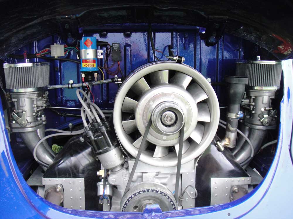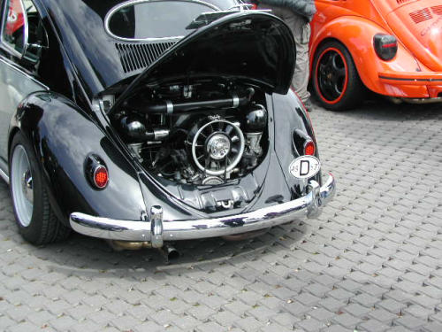 C'est un moteur Holzapfel avec culasses de 911, arbres à cames en têtes, carter spécial sur base T4 (sans puit de distributeur!) et biensur injection.