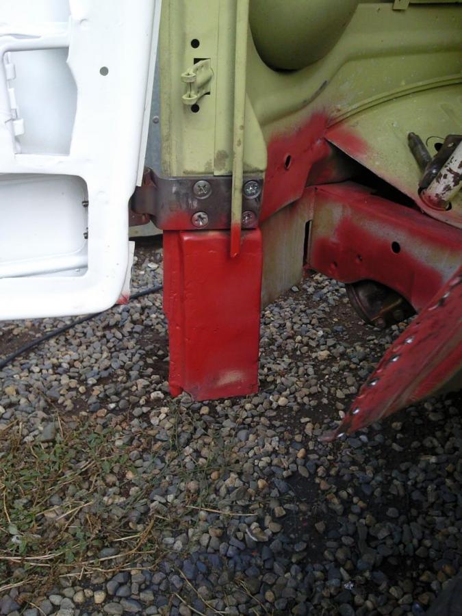Bouchage du trou dans le pied de porte, avec au préalable, décapage et antirouillage de la caisse et de la pièce neuve. Puis pointage du plancher de cabine avec redressage de la "coque" du bus car il avait pris un shoot par ici aussi. Encore quelques ajustements et l'empilage des tôles de l'aile pourra être fini! Bon en rentrant le bus dans le garage j'ai roulé sur une partie de l'aile neuve