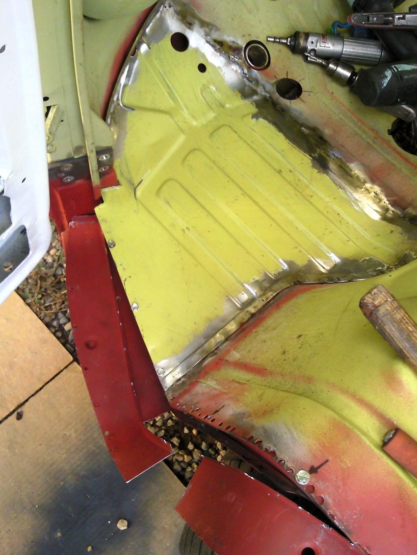 Voila les traverses finies, le passage de roue avant fermé et le bas de caisse et le flanc soudés! Encore quelques détails (joints, faisage de place pour la boite 915 préparation etc ) et les planché pourront reprendre leur place!
