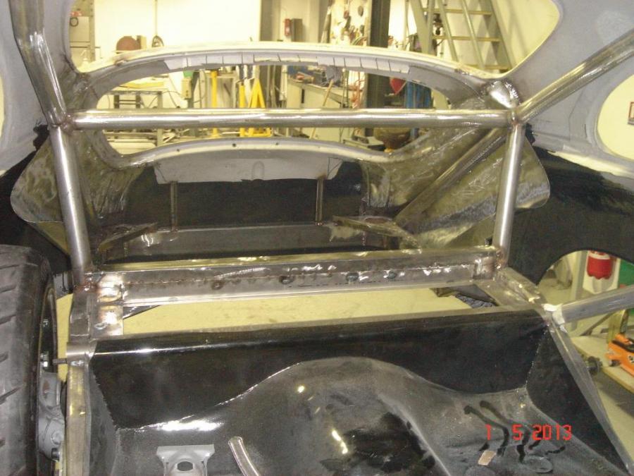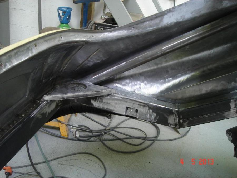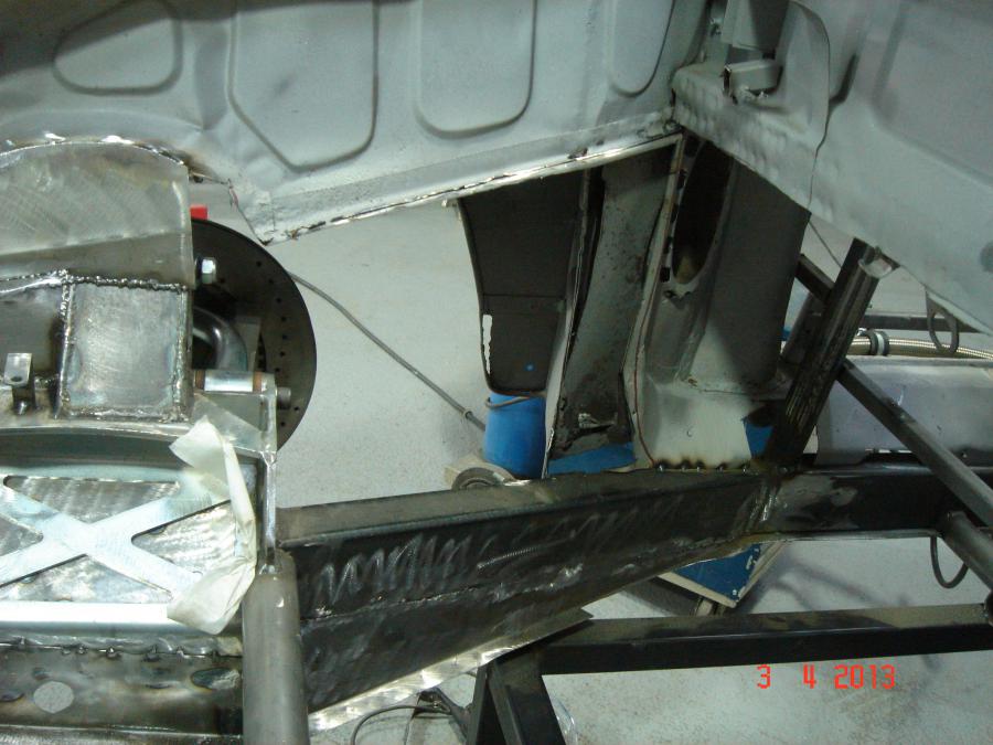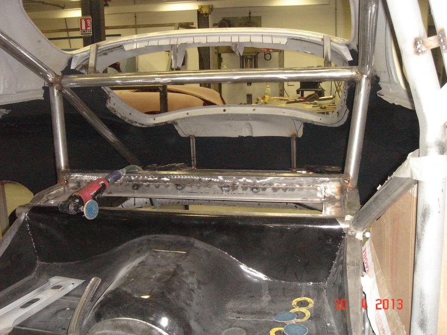 En attendant les pièces pas dispo chez wilwood je suis à fond sur la tôlerie. Déjà j’ai fini l’arceau ce qui m’a permis de remettre la coque sur le chassie définitivement , et je lui aie fais un chariot pour pouvoir liberer le pont quelques soudures sur le bloc avant pour bien solidariser tout ca et je commence par l’arrière le changement des tôles pourries ou inadapté , Bref je dégage toutes les tôles de 1959 pour en refaire d’autres plus adapté au 6 et a son encombrement.