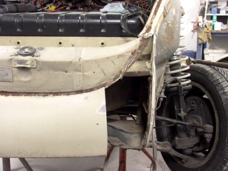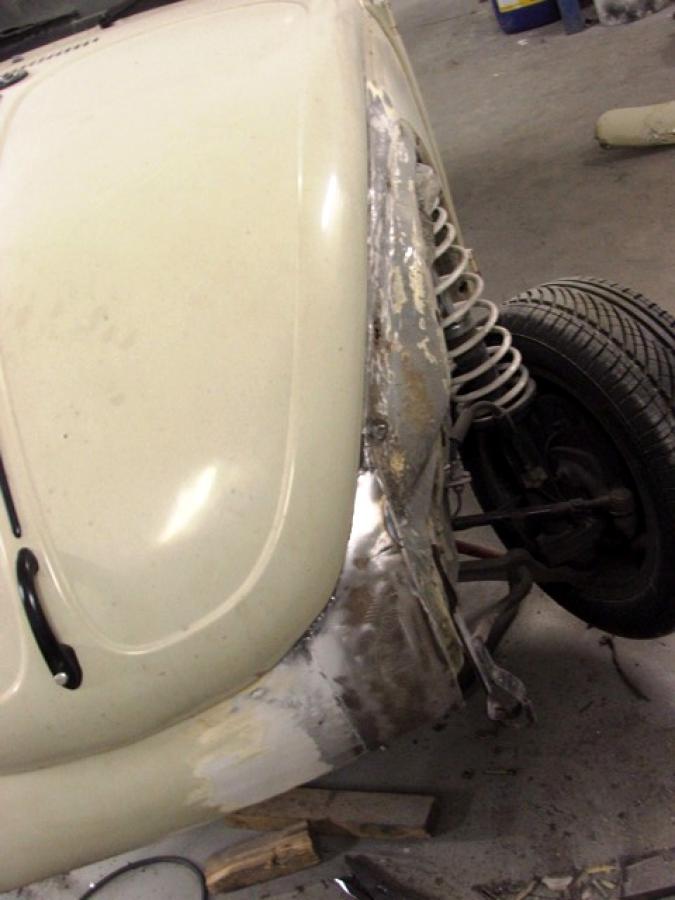 redressage de la joue d'aile réparation tant qu'on y est du bloc avant qui avait eu un choc et tres mal réparé y'a des années