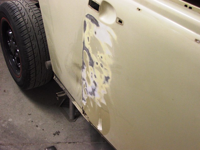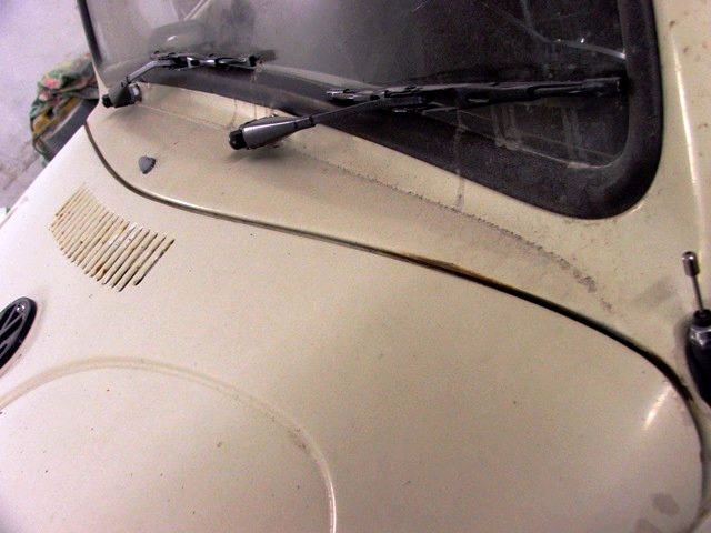 au passage , supression de levre de l'ancien joint de capot , gros nid a rouille