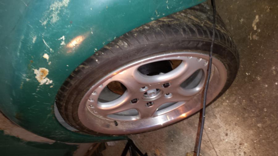 Le disque a repris ça place avec un peu de frameto sur et dans le bol ainsi que sur les tranches et Voilà la roue de nouveau à sa place soutenant la voiture.