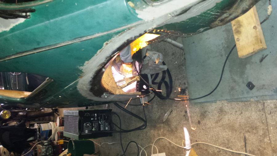 dépointage des anciennes tôles Mise en place des nouvelles avant soudure Soudure en cours Préparation de la joue d'aile pour son remplacement La joue d'aile est en place et pointée mais je n'ai pas pris de photos de ça ...