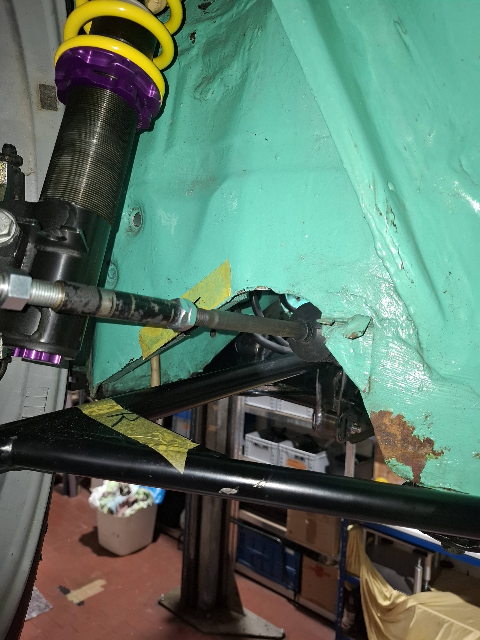 La rotule porteuse est dans l'axe du tube se qui fait que t'es obligé de virer la vis qui la fixe a la fusée pour régler le carrossage avec une précision 1/2 pas (1/2 tours de rotule)