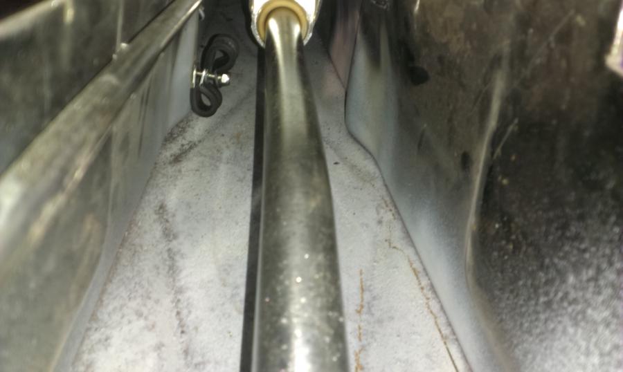 - percer la poutre en 6mm en 3 endroits accessibles (devant, au niveau du levier et derrière). Désolé, mais ça ne marchera pas avec un levier d'origine, sauf si vous avez des toutes petites mains